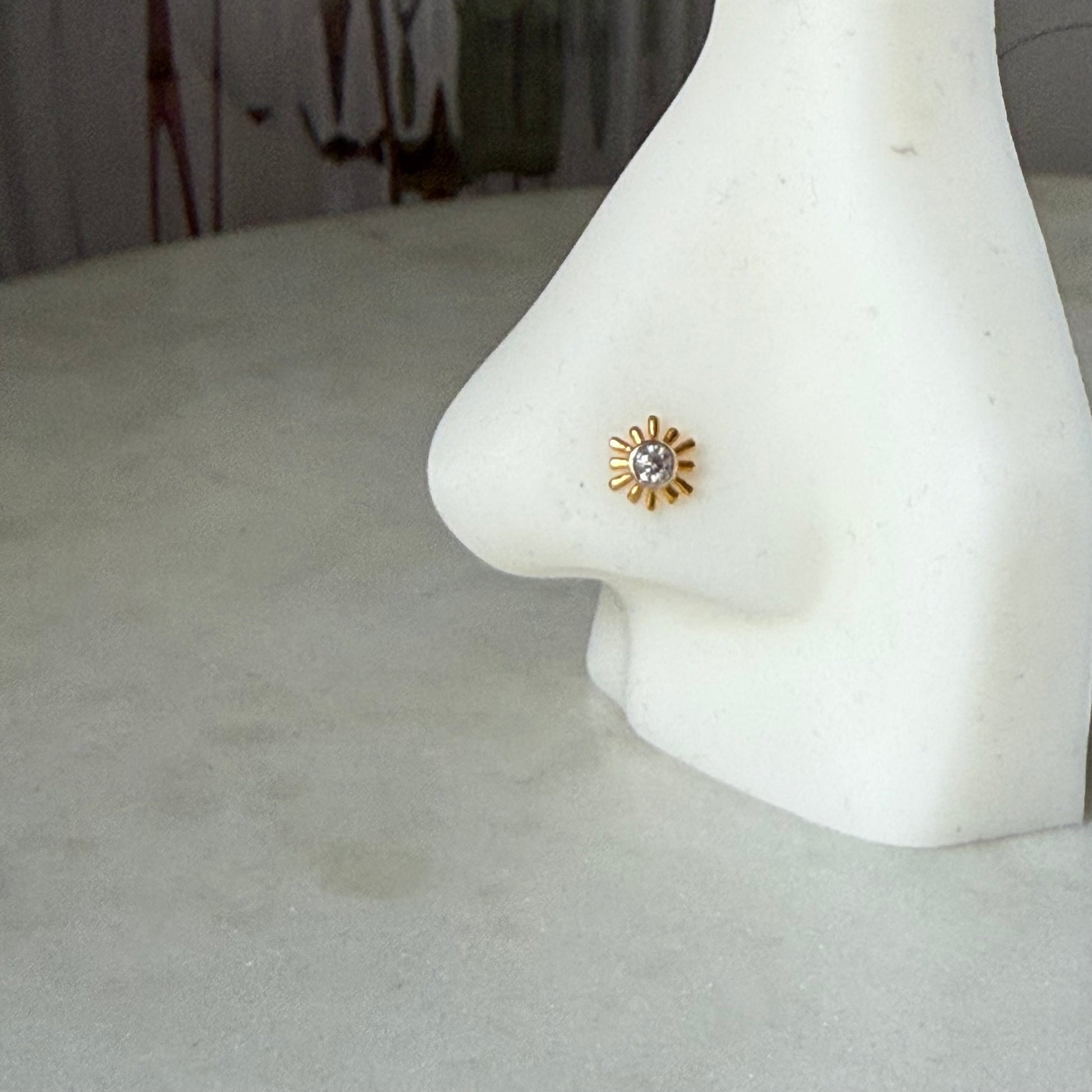 14ct gold single SUN stud