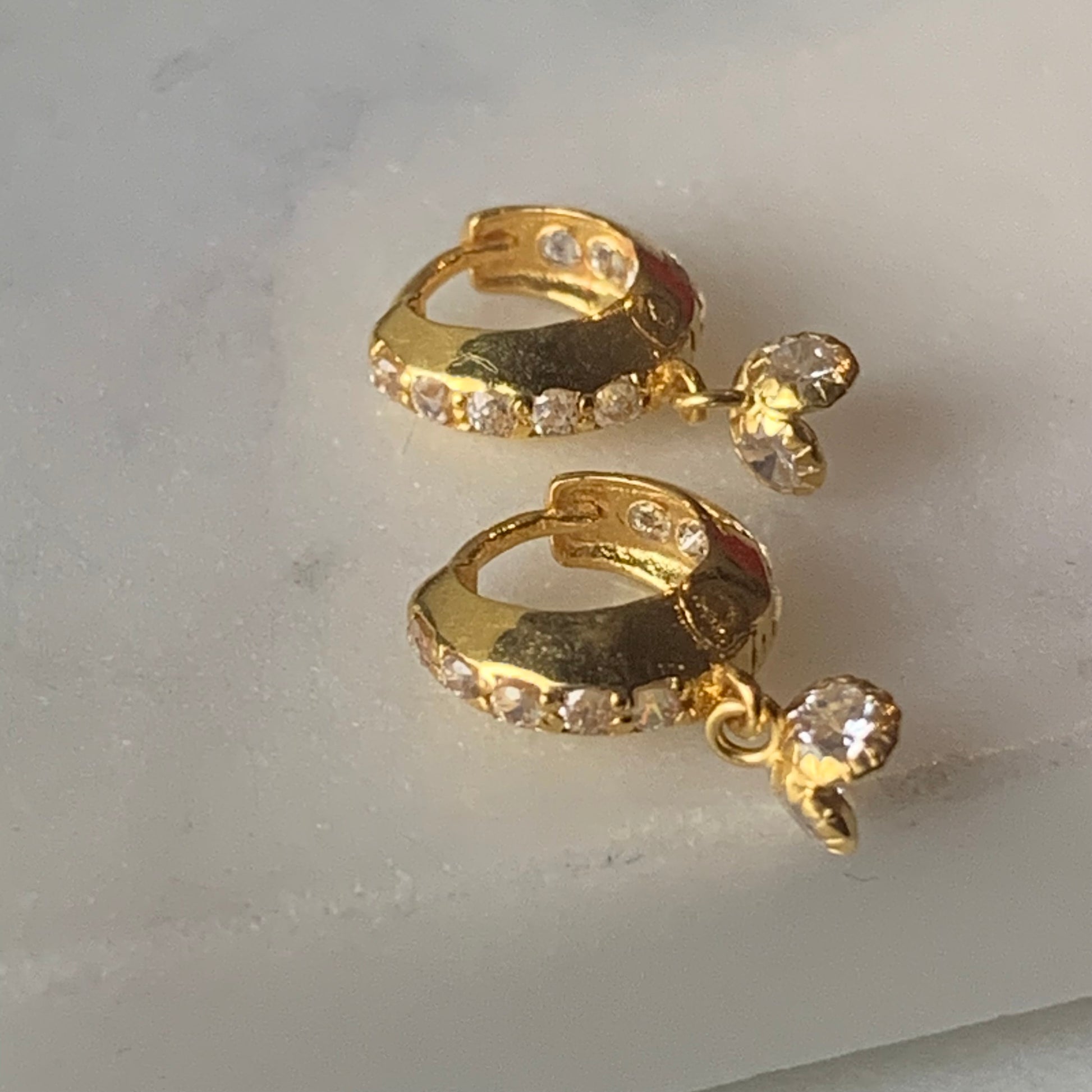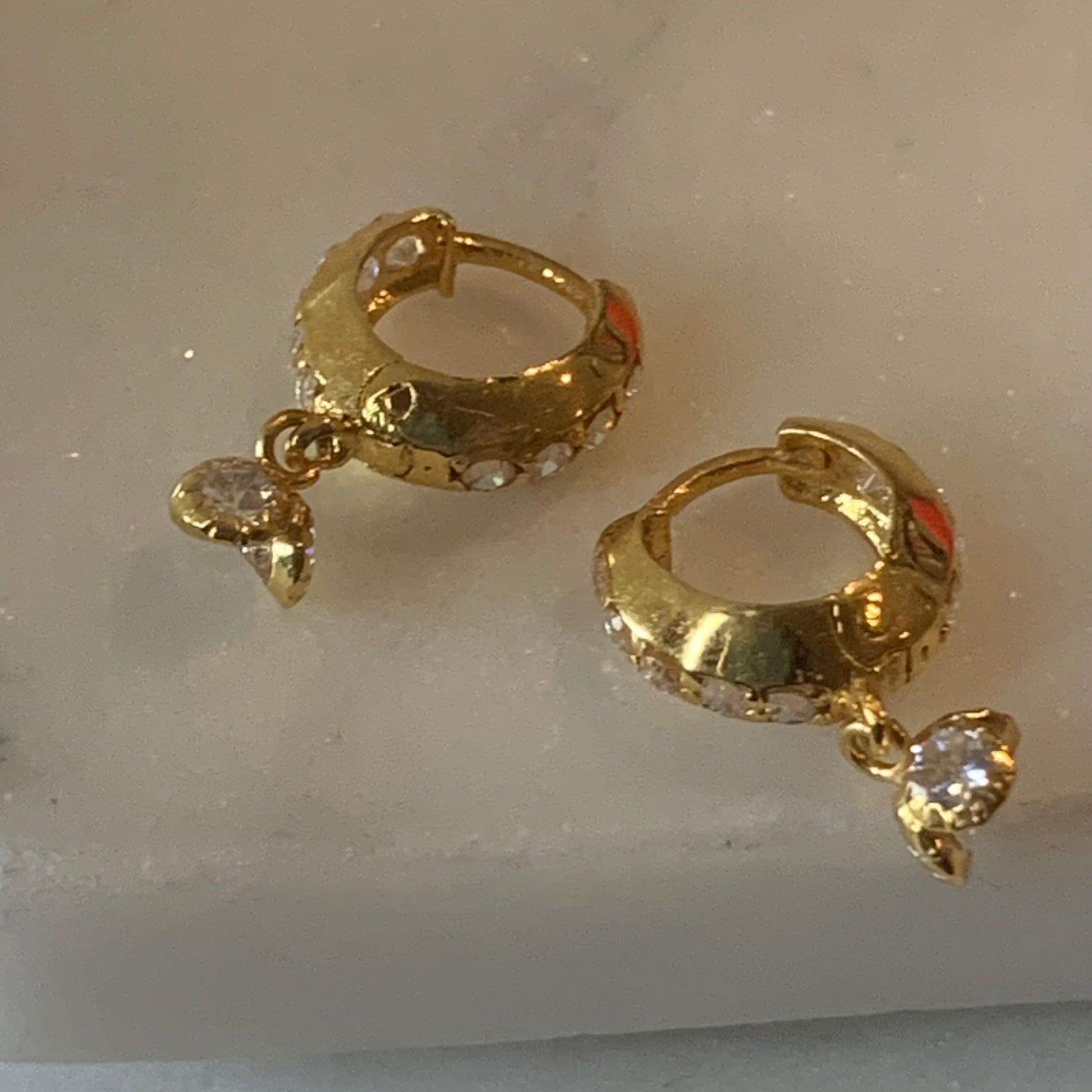 How sweet are these handcrafted 18 carat gold dangly earrings pair