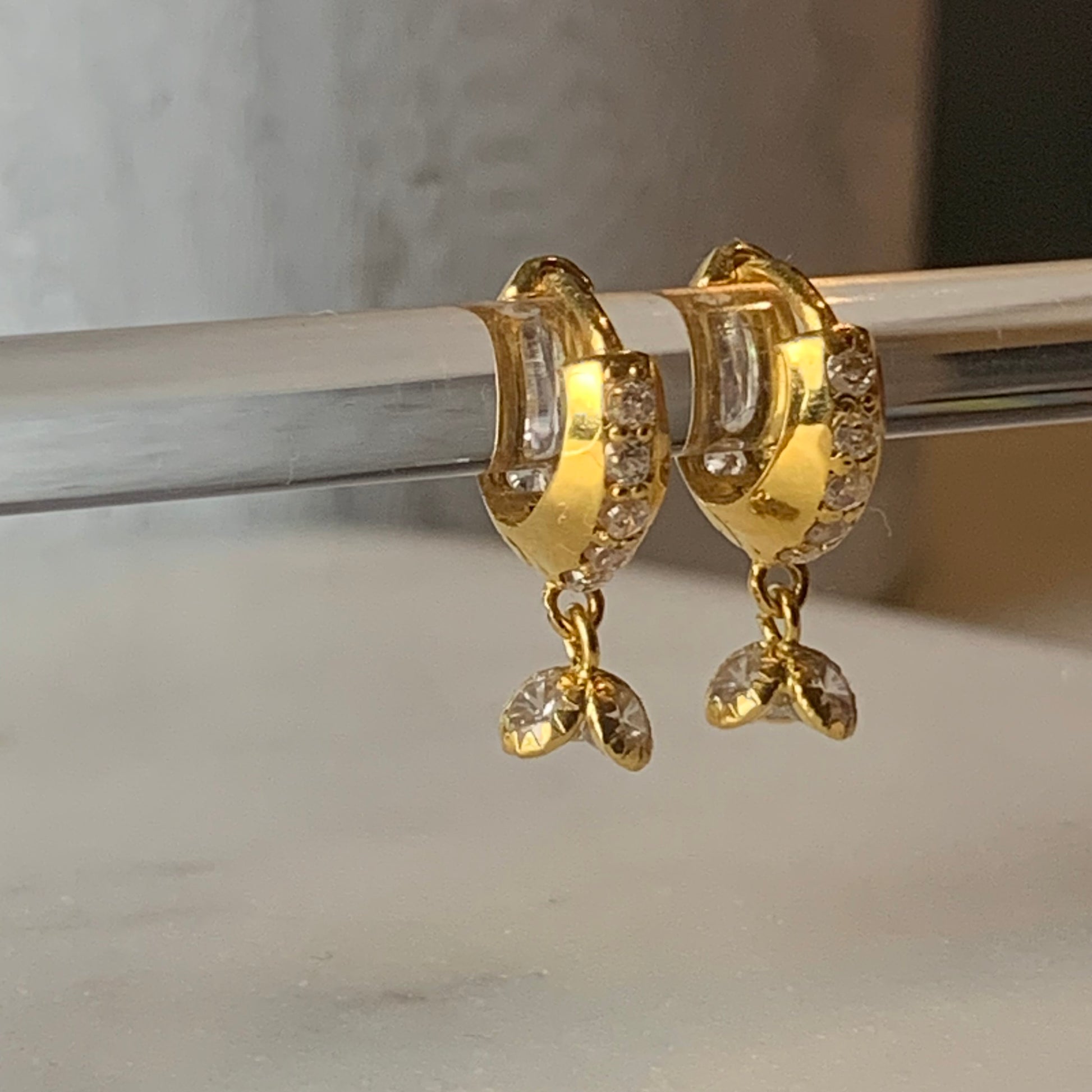 18ct Gold Dangly hoops pair | xs