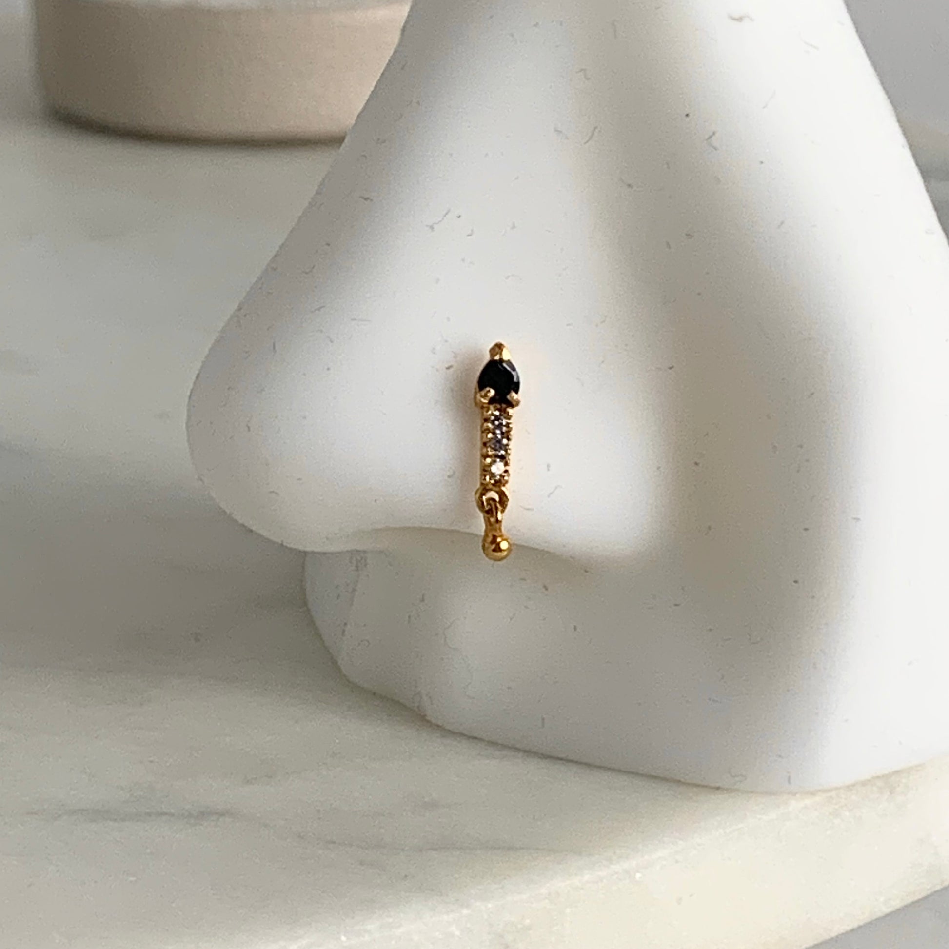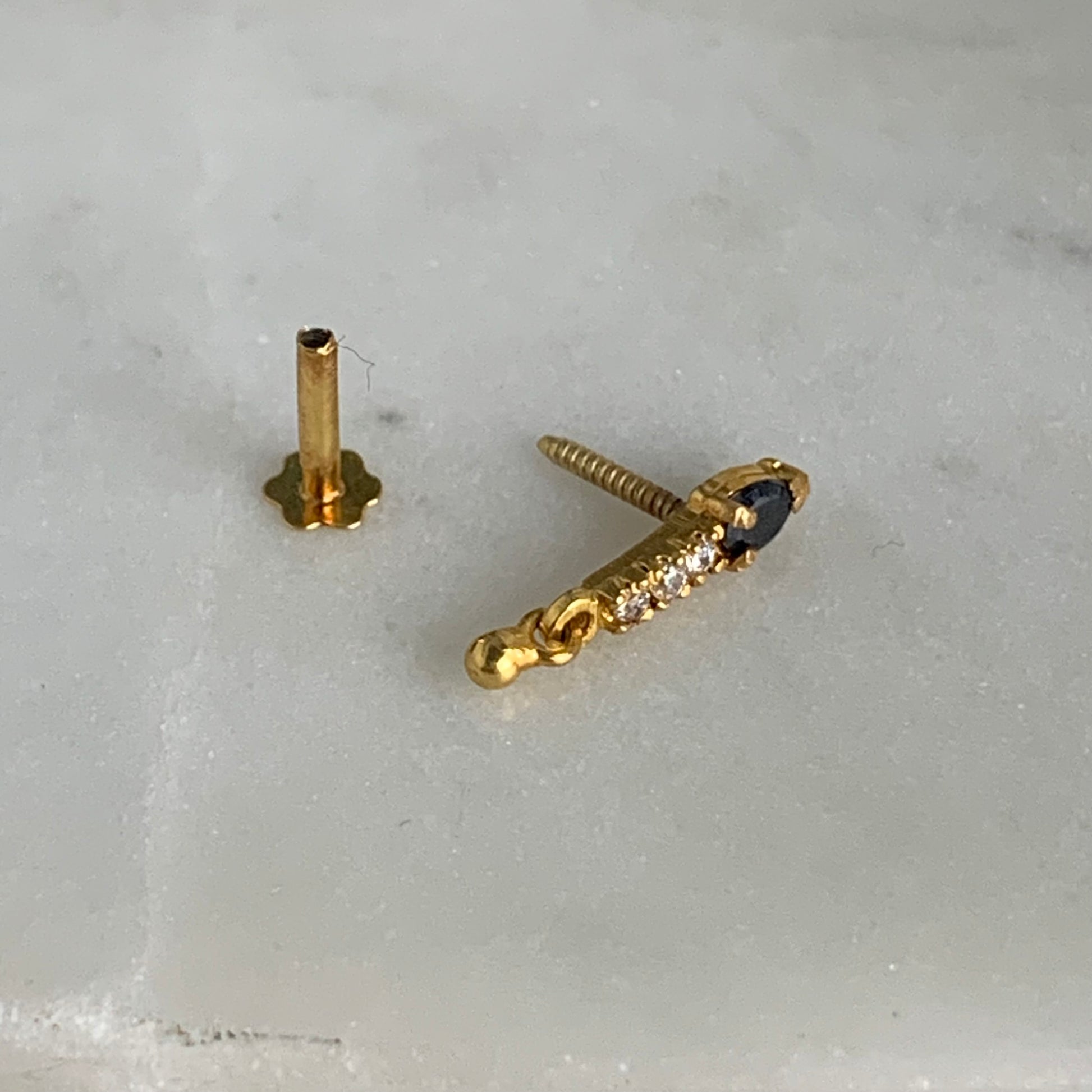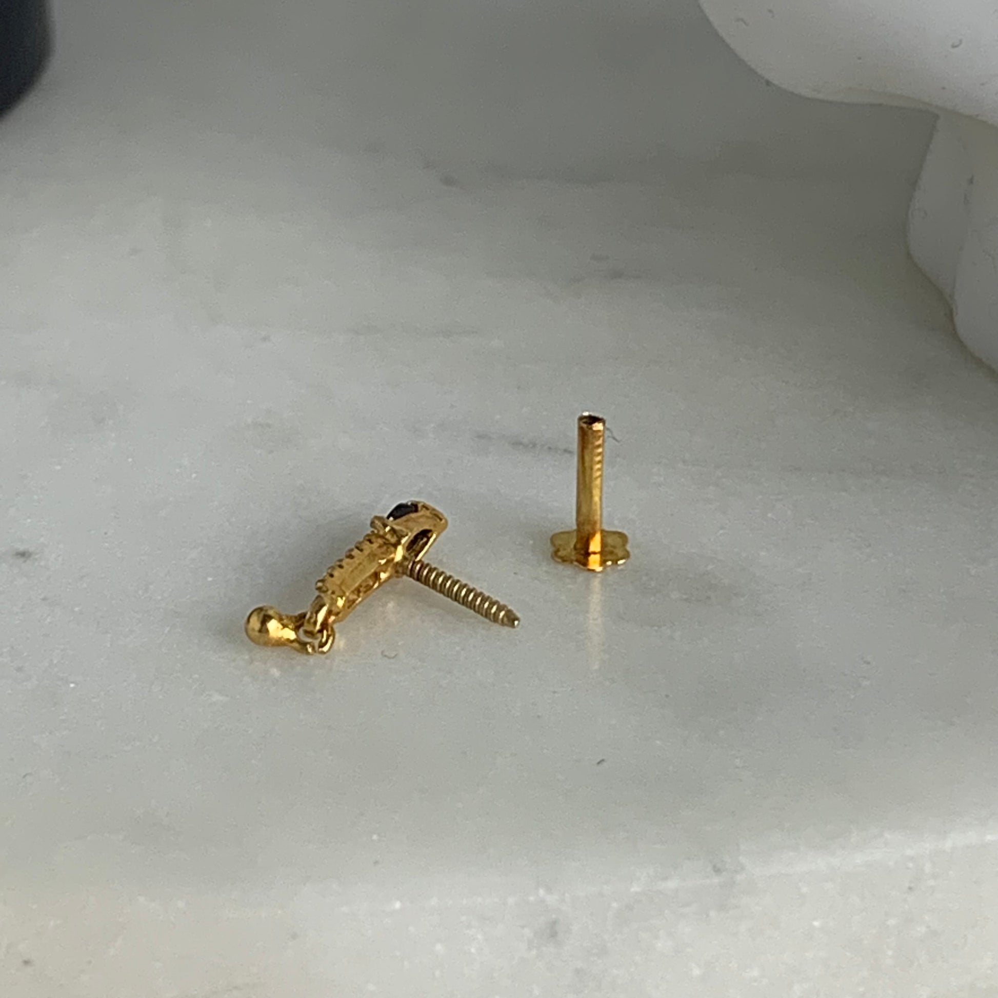 18 carat gold dangly stud